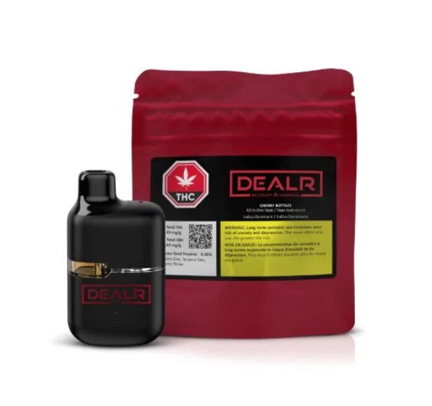 Crack open Cherry Bottles, the indica-dominant all-in-one for those who savour taste without making a scene. From Cherry Cookies and Zkittles BX1, sweet cherry flavouring pours over crisp cola fizz for a candy-soda hit that's smooth from start to finish. Powered by a plant-based cannabis formulation and enhanced with natural terpenes, Cherry Bottles delivers flavour-packed pulls in a rechargeable device with a USB-C port.