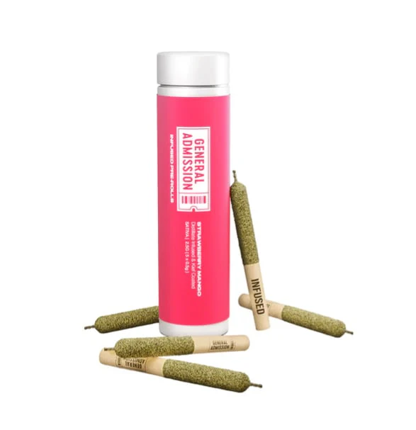 Strawberry Mango hits with full-bodied fruit flavour. Made with milled whole flower, infused with signature triple-distilled distillate, dusted in premium kief, and boosted with botanical terpenes—these infused pre-rolls deliver smooth hits, high-THC, and the big, bold flavour you expect from G.A.!