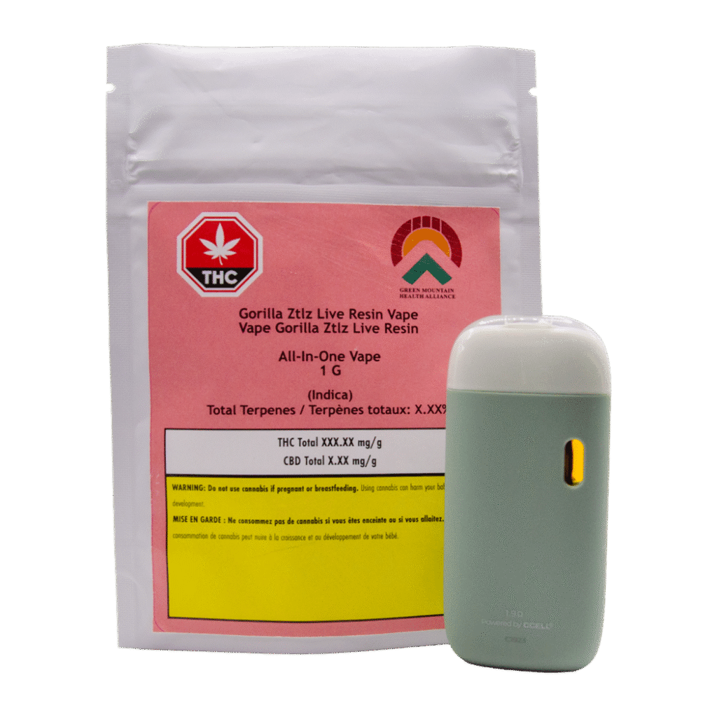 Experience bold flavour and full-spectrum potency with Gorilla Ztlz Live Resin All-in-One. Crafted from fresh-frozen flower and propane-extracted for high (8-12%) terpene richness, this 1g device delivers tropical fruit, berry, and diesel notes in every smooth pull. Cold-finish cultivation enhances aroma and depth. All in a sleek, pre-charged, draw-activated pod. No fillers, no fuss—just pure, portable vapour.