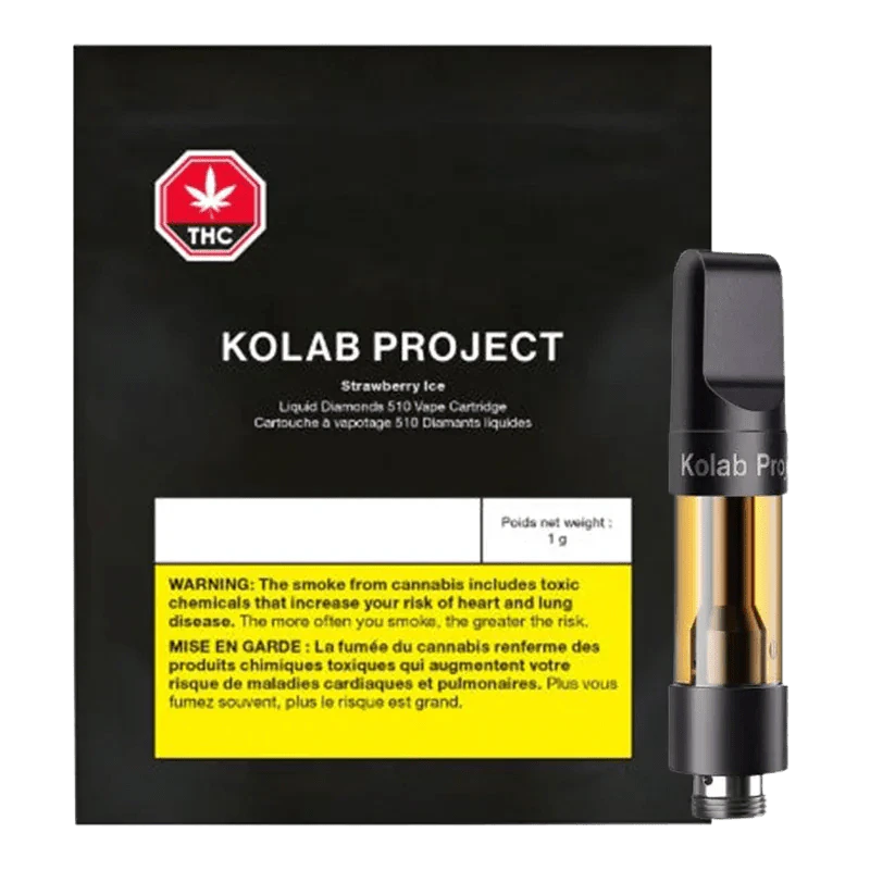 Embrace the unexpected with Kolab Project's Strawberry Ice Diamonds 510 cartridge, combining state-of-the-art technology with convenient design. Crafted with liquid diamonds, botanical terpenes, and flavouring agents, this cartridge offers a powerful punch of 95% THC and exotic notes of sweet strawberry and a hint of earthy mint. Made in Kolab Project's premium hardware and paired with a black metal mouthpiece that's smooth to the touch.