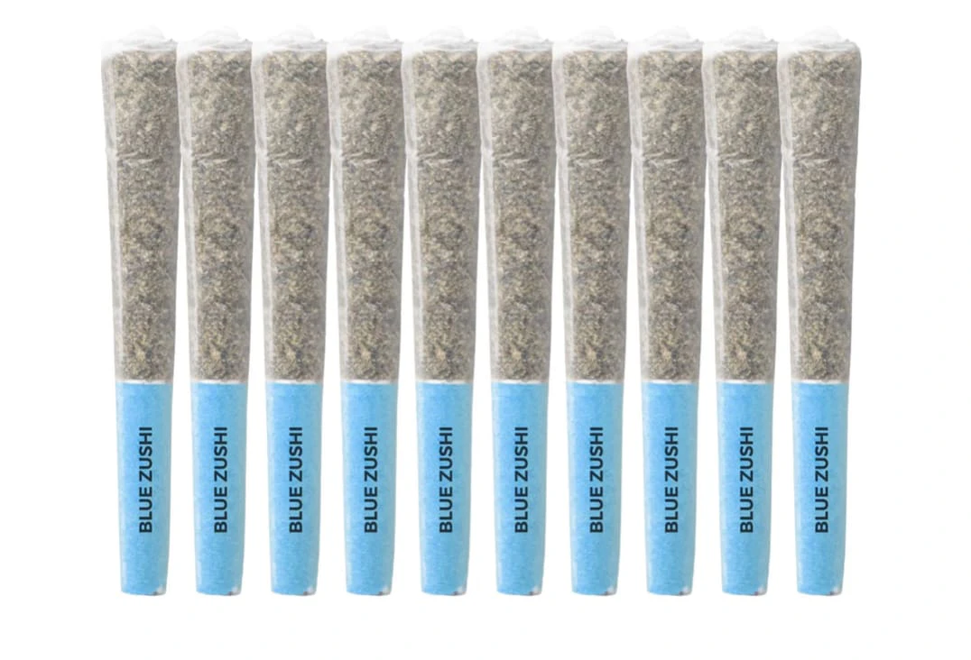 Blue Zushi 10x0.5g pre-rolls are packed with expertly milled whole flower and hand-finished with a Dutch crown. This Zkittlez and Kush Mintz cross delivers bold gassy aromatics with sweet tropical undertones, offering a smooth, full-bodied smoking experience in a convenient multi-pack.